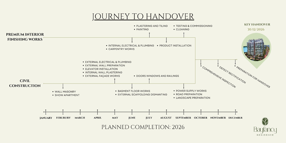 By December 2026, Bayfancy Residence is planned to reach its handover moment, not as an abrupt finish, but as the natural conclusion of a well-governed process. For future residents, this journey represents assurance. For the project team, it represents responsibility honored.